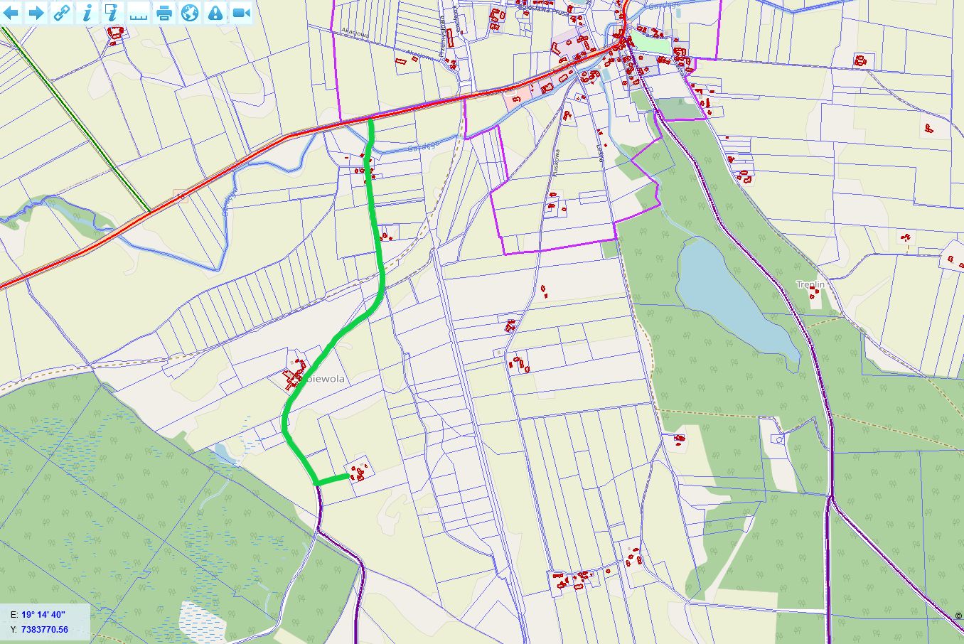 W załączeniu mapka z zaznaczoną na zielono trasą.