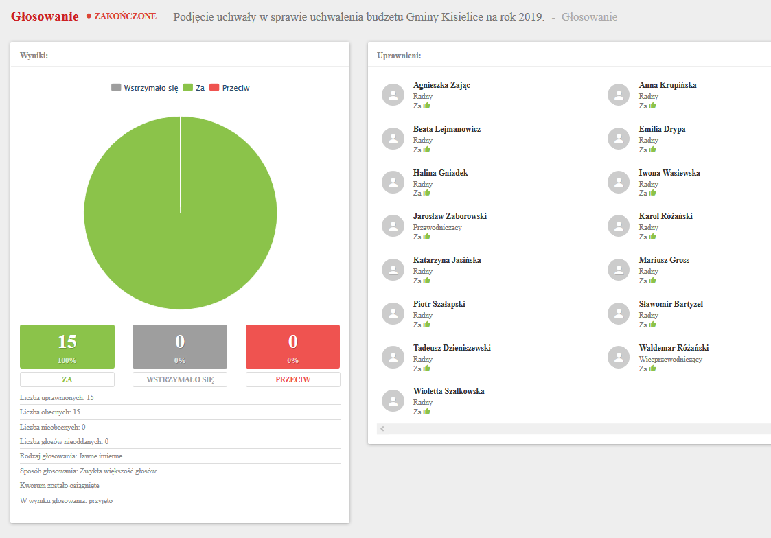 Uchwała w sprawie uchwalenia budżetu Gminy Kisielice na rok 2019