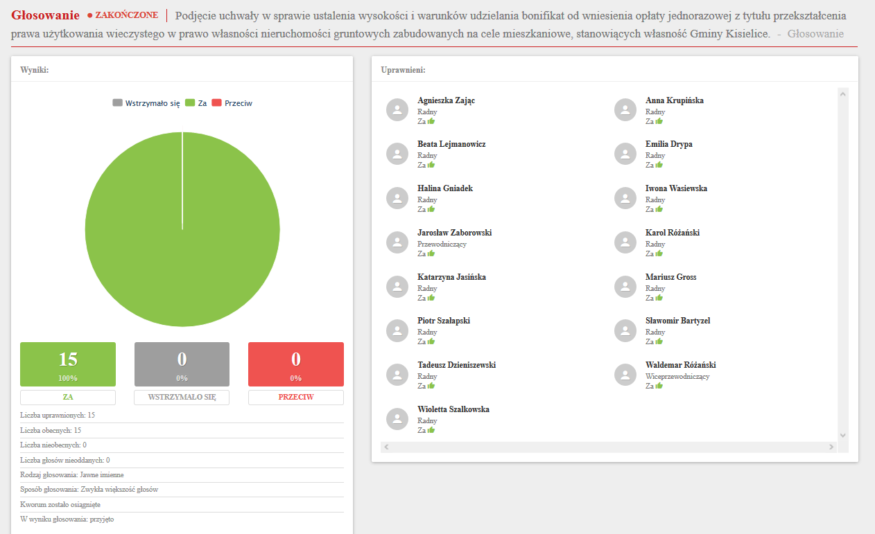 Uchwała w sprawie ustalenia wysokości i warunków udzielania bonifikaty od wniesionej jednorazowo opłaty z tytułu przekształcenia z mocy prawa prawa użytkowania wieczystego gruntów stanowiących własność Gminy Kisielice zabudowanych na cele mieszkaniowe w prawo własności tych gruntów
