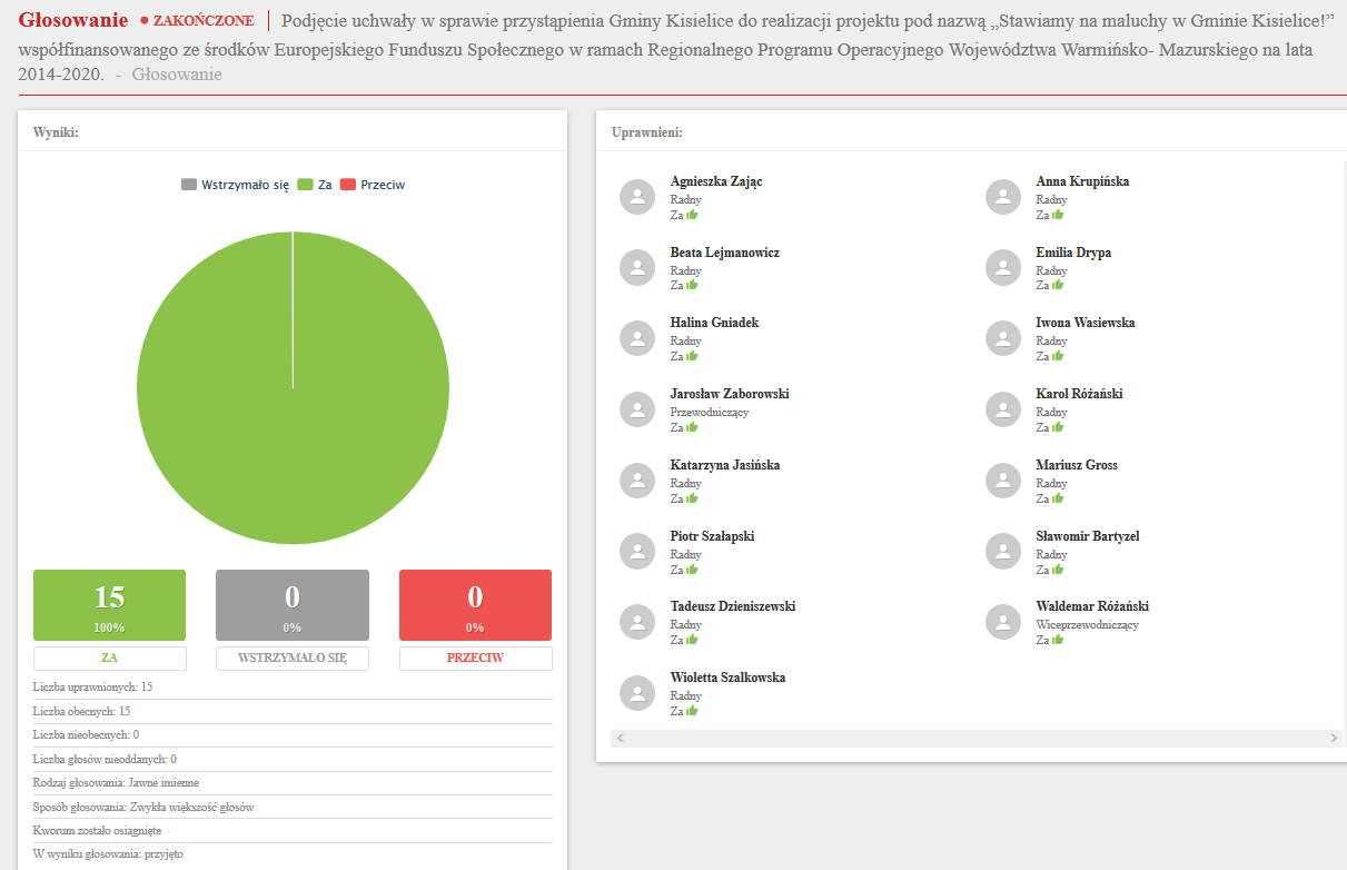 Uchwała w sprawie przystąpienia Gminy Kisielice do realizacji projektu pod nazwą „Stawiamy na maluchy w Gminie Kisielice !” współfinansowanego ze środków Europejskiego Funduszu Społecznego w ramach Regionalnego Programu Operacyjnego Województwa Warmińsko-Mazurskiego na lata 2014-2020