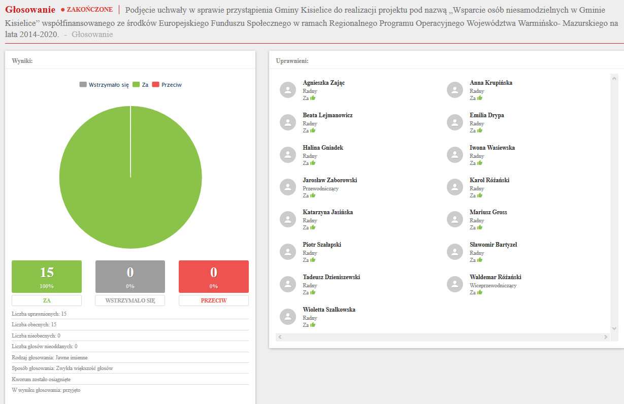 Uchwała w sprawie przystąpienia Gminy Kisielice do realizacji projektu pod nazwą „Wsparcie osób niesamodzielnych w Gminie Kisielice” współfinansowanego ze środków Europejskiego Funduszu Społecznego w ramach Regionalnego Programu Operacyjnego Województwa Warmińsko- Mazurskiego na lata 2014-2020