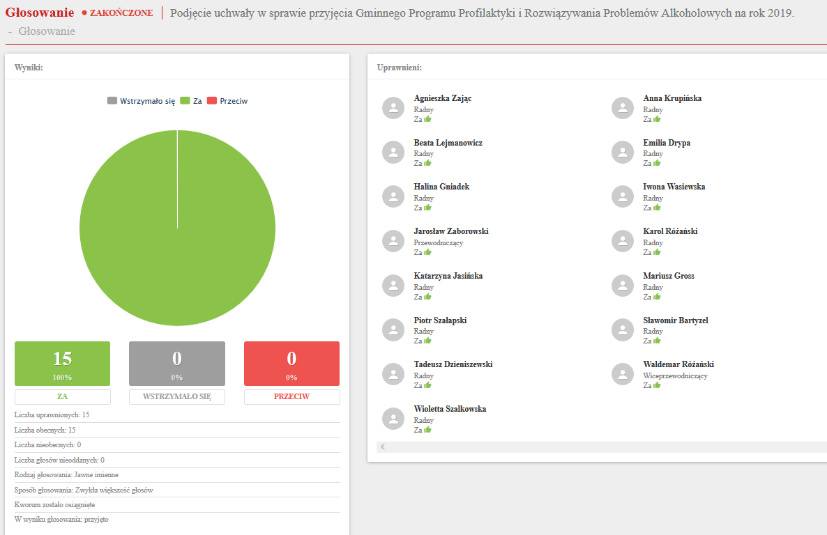Uchwała w sprawie przyjęcia Gminnego Programu Profilaktyki i Rozwiązywania Problemów Alkoholowych na 2019 rok